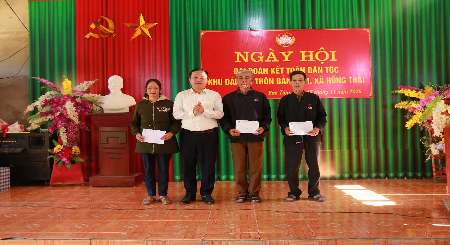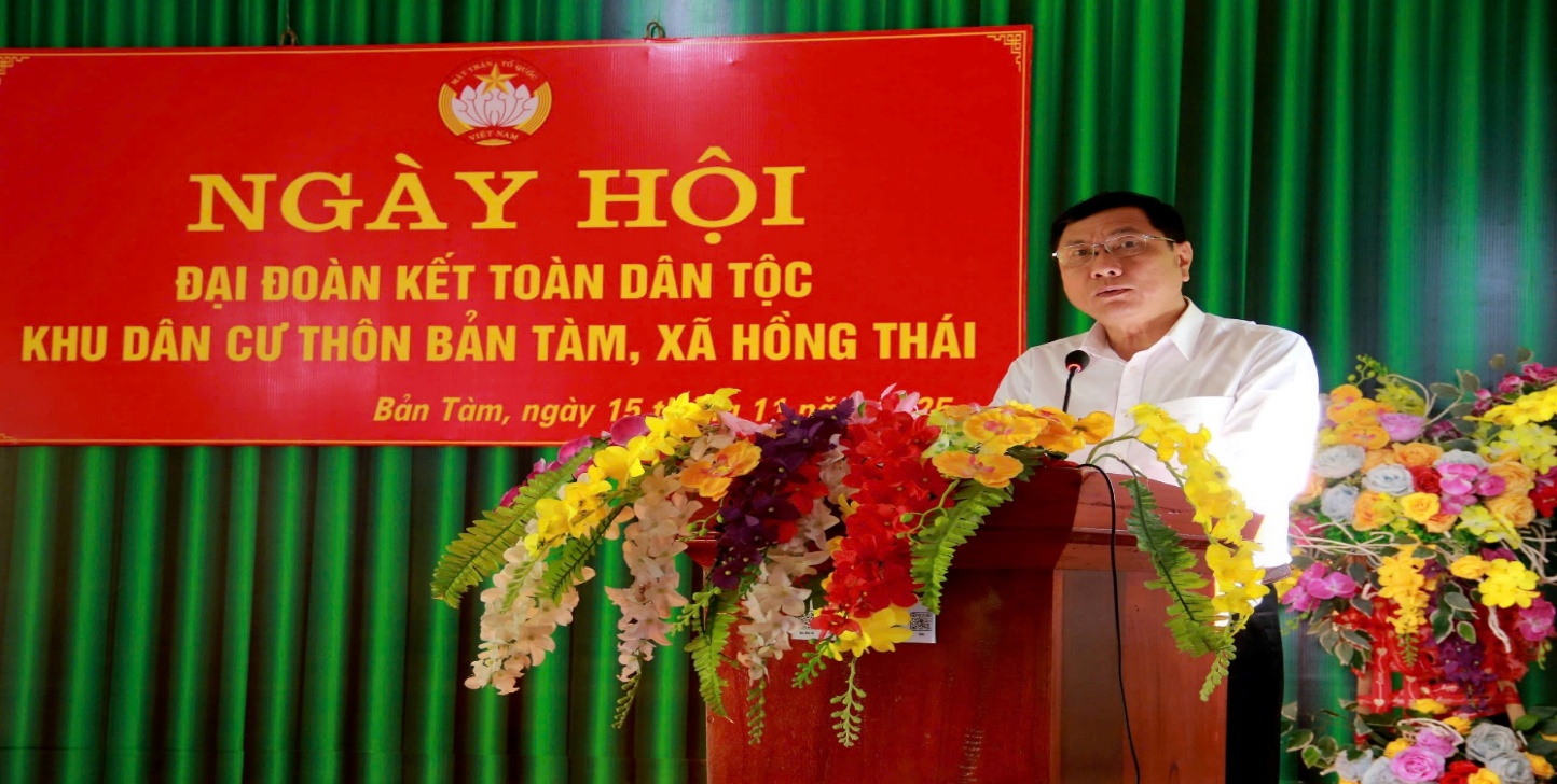 Sáng ngày 15/11/2025, đồng chí Phùng Tiến Quân, Ủy viên Ban Thường vụ Tỉnh ủy, Trưởng Ban Nội chính Tỉnh ủy đã tới dự và chung vui Ngày hội Đại đoàn kết toàn dân tộc và kỷ niệm 95 năm Ngày truyền thống Mặt trận Tổ quốc Việt Nam (18/11/1930 - 18/11/2025) tại thôn Bản Tàm, xã Hồng Thái; cùng dự có đồng chí Ma Quý Đôn, Bí thư Đảng ủy, Chủ tịch Hội đồng nhân dân xã Hồng Thái.